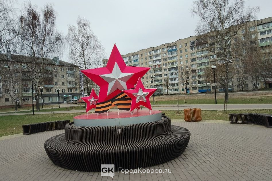 В сквере на улице Комсомольской заменили инсталляцию — оленей заменили красными звёздами в обрамлении Георгиевской ленты. Яркая композиция будет украшать сквер второй год подряд, после его благоустройства.