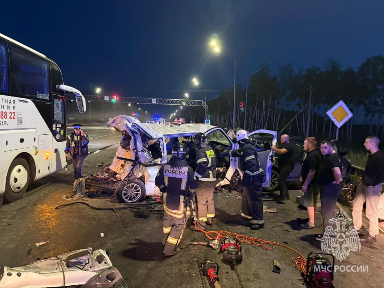 - «По предварительной информации, произошло попутное столкновение двух легковых автомобилей, минивэна «Рено» и автобуса, следовавшего по маршруту » Чебоксары — Москва».