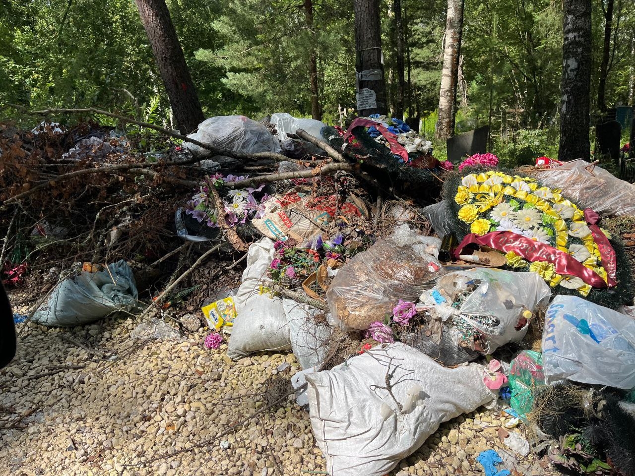 В надзорный орган обратились местные жители, которых откровенно допекли огромные кучи специфического мусора на Троицко-Никольском кладбище – погребальных венков, временных крестов-памятников, обломков цветочниц, а также веток, кирпичей и прочего хлама. Городская прокуратура провела проверку — и через суд, «в интересах неопределенного круга лиц», потребовала от ковровской администрации вывезти мусор.