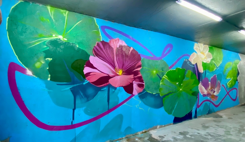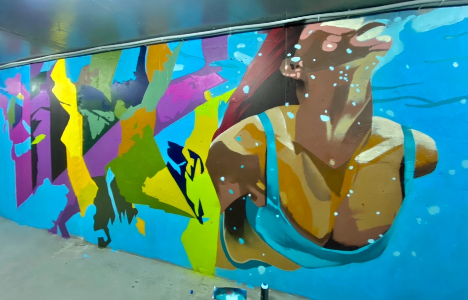 — Летом 2025 года я расписывал подводный переход в вейк-парке «Добрый» в Доброграде, — рассказывает Илья. — Это две стены по 40 метров каждая. Работал по собственному эскизу в стиле, который я сейчас развиваю и могу назвать «digital nature». Основная идея — сочетание природных мотивов и цифровых элементов, создающее ощущение иллюзорности нашего пространства в век тотальной цифровизации. Это была отличная возможность реализовать свою идею на большом объекте. Отдельная благодарность Дмитрию Поликанову за доверие к моему видению.