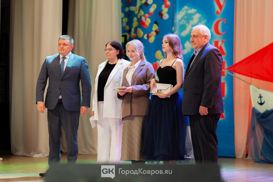- «Вы не только умные, но и красивые, талантливые, креативные, — обращается к выпускникам Елена Фомина, председатель Совета народных депутатов города Коврова — Спасибо педагогам за поддержку. Впереди у вас прекрасное будущее. Помните: ничего невозможного в этой жизни нет. Если судьба забросит вас в другой город, знайте — здесь вас всегда ждут. Мы вас ценим и будем вам помогать»