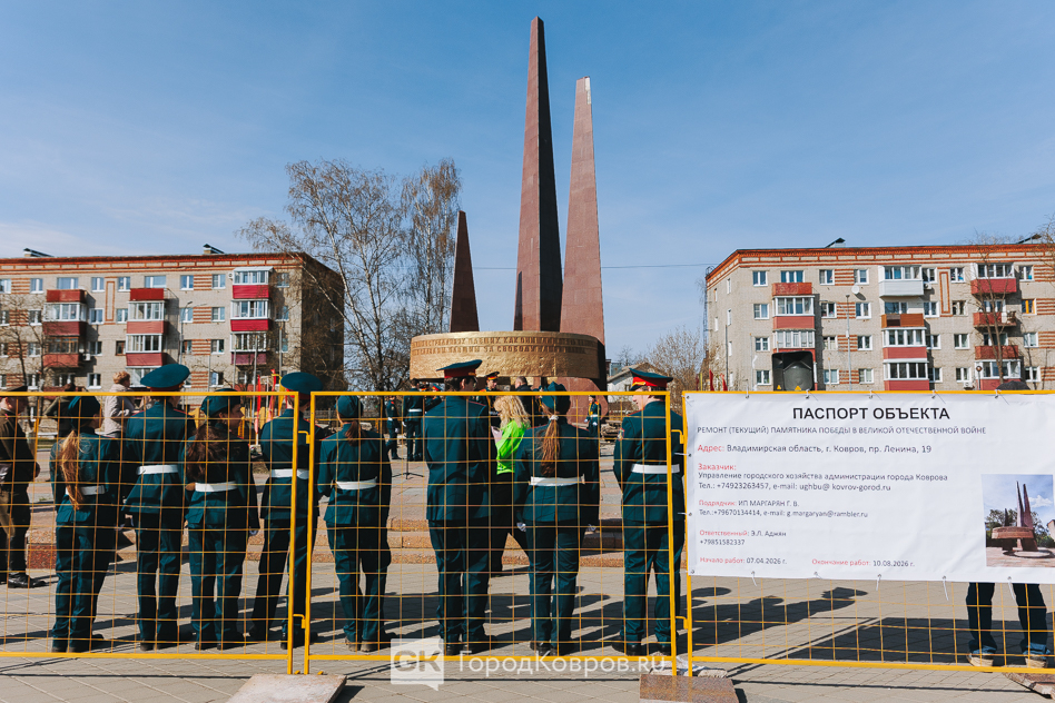Утро 15 апреля на площади Победы в Коврове выдалось торжественным и немного грустным. Десятки людей — кадеты, студенты-волонтёры, ветераны СВО, реконструкторы из «Наследников Победы», представители общественности и прессы — пришли сюда, чтобы стать свидетелями редкой церемонии. Вечный огонь на мемориале погас. Не навсегда. А чтобы спустя несколько месяцев вернуться — обновлённым, как и сам монумент.