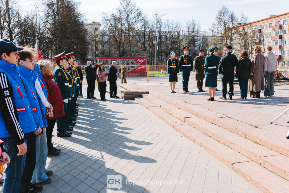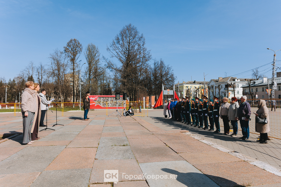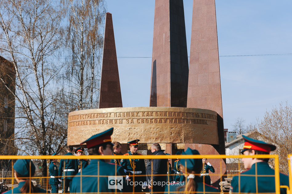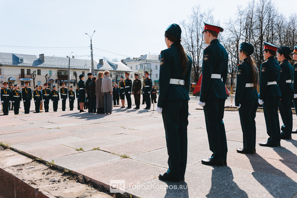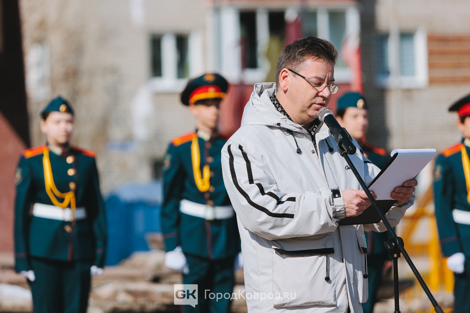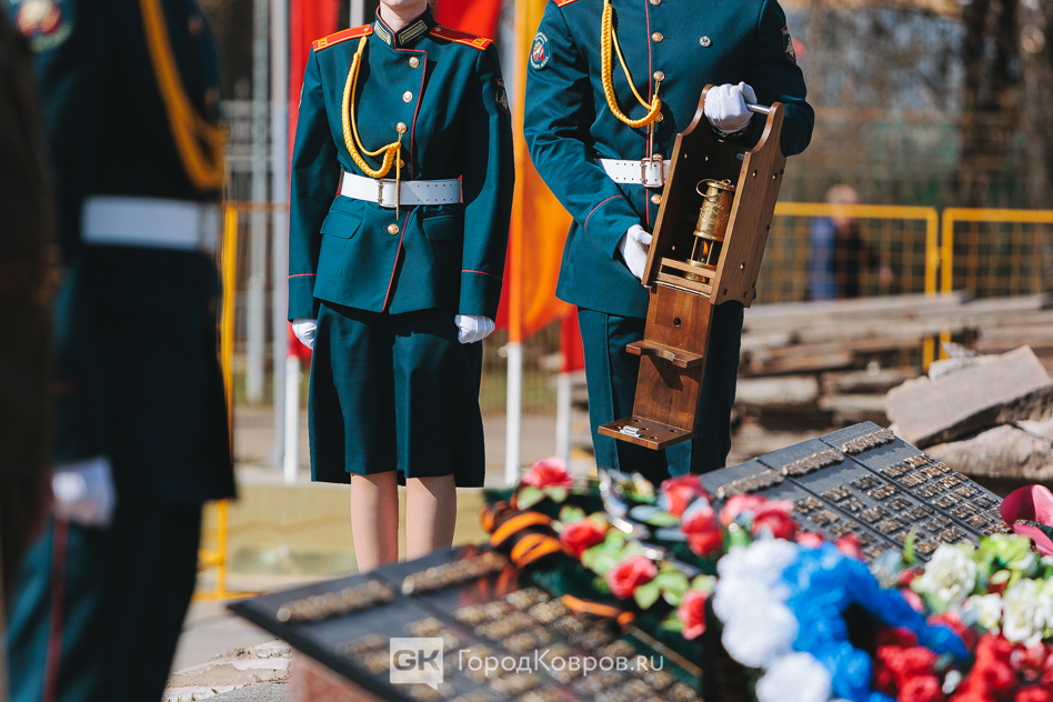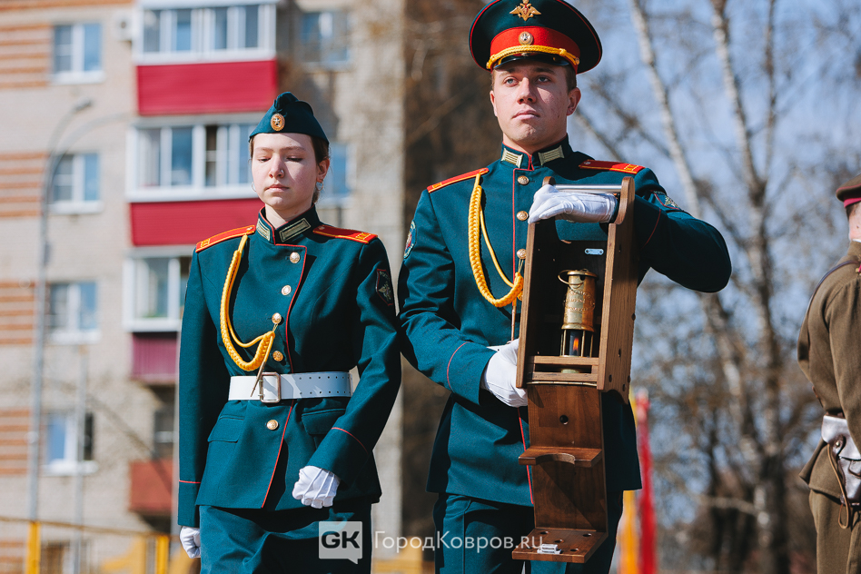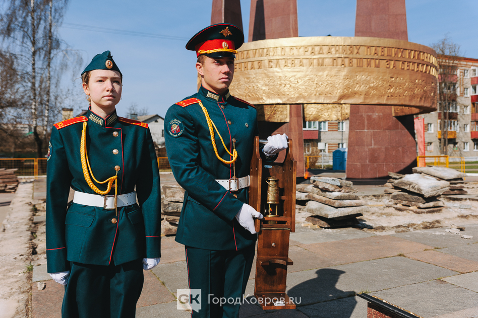 Кульминацией стало внесение двух капсул. Одну — с частицей Вечного огня — вынесли реконструктор и кадет. Вторую — с землёй с захоронения воинов Великой Отечественной, умерших от ран в госпиталях Коврова, — тоже торжественно пронесли под стихи ведущего. Глава города и председатель горсовета передали капсулы участнику СВО и кадету.