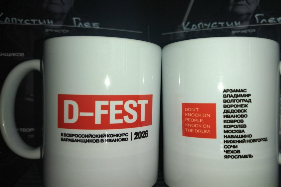 Помимо дипломов, Глеб получил ценные подарки: тренировочный пэд со стойкой, палочки, фирменную футболку и две памятные кружки с перечнем всех городов-участников. На одной из кружек — наш Ковров, город Воинской Славы.
