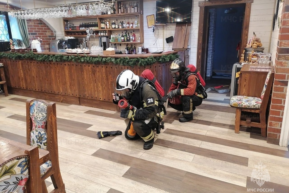 По легенде учений, возгорание произошло в ресторане на цокольном этаже. Расчеты МЧС, прибывшие по тревоге, немедленно приступили к тушению условного пожара площадью 400 кв. метров и эвакуации персонала и гостей.