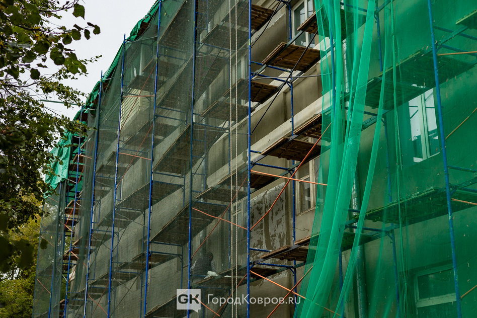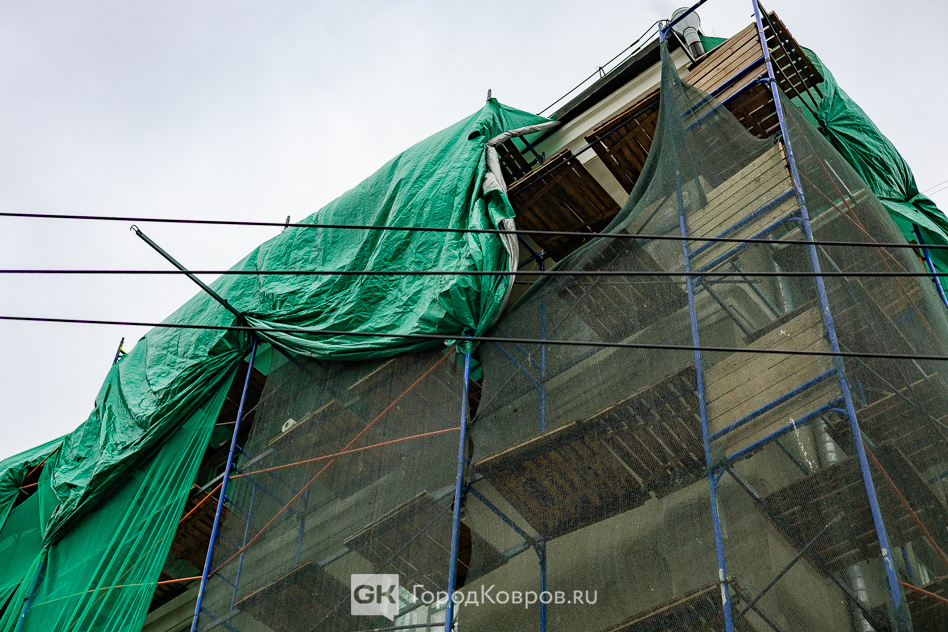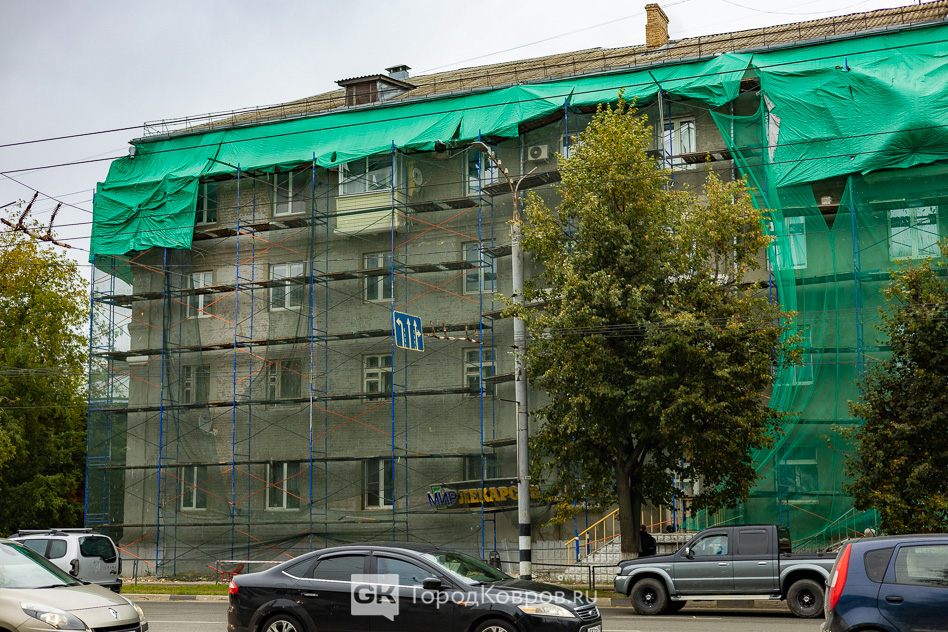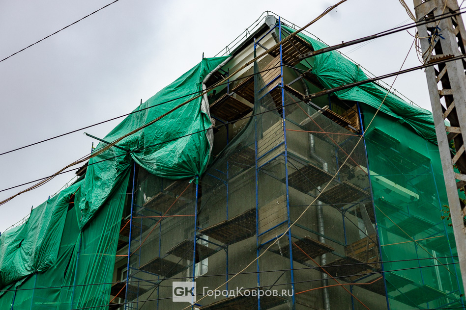 Ремонт четырёхэтажного дома на перекрёстке проспекта Ленина и улицы Социалистической (проспект Ленина, 18) идёт с начала лета. Фасадные работы сразу привлекли внимание ковровчан.