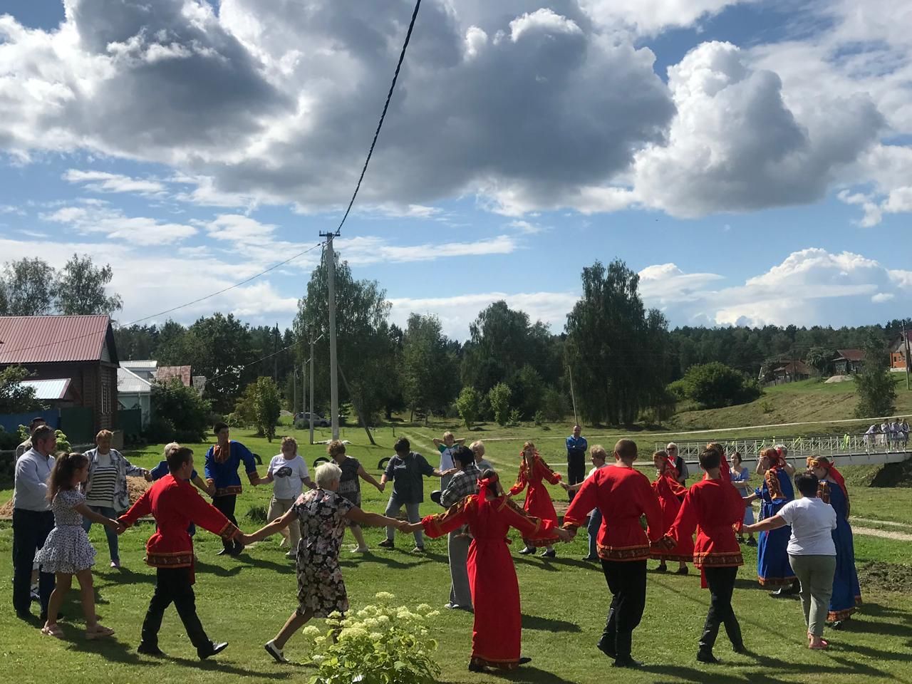 Но главное событие в деревне — престольный праздник в честь Владимирской иконы Божьей Матери. Утром в этот день вся деревня тянется к маленькой часовне. Приезжает батюшка и проводит службу. После молебна накрывают длинные деревенские столы: на них и пироги с капустой, и солёные огурчики, и компоты из вишни, и мёд в баночках. Кто-то играет на гармошке, дети кружатся в хороводе, а старики вспоминают, как праздновали здесь в их молодости.