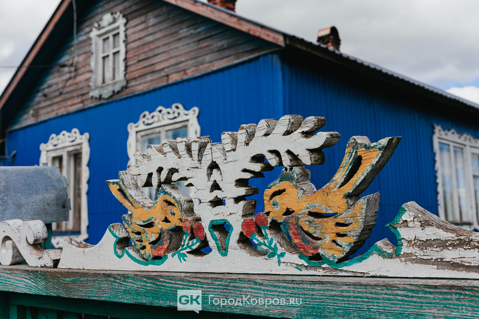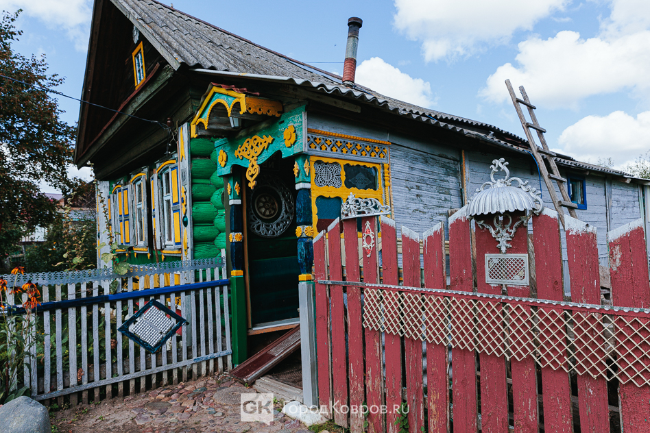 Среди тех домов, что устояли и уцелели, попадаются интересные конструкции. Аккуратный «пряничный» домик с садом камней у ворот и загадочными алыми лентами на деревьях в саду — это дом Николая. Пожилой мужчина когда-то был деревенским почтальоном. Затем с работы ушёл и увлёкся хендмейдом и каким-то духовными практиками. Что за стиль и что за идеи, жители деревни не понимают. Николай, когда с работы ушёл, обособился — живёт один, на своей волне.