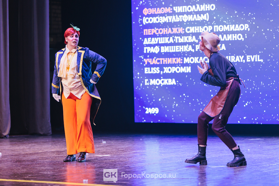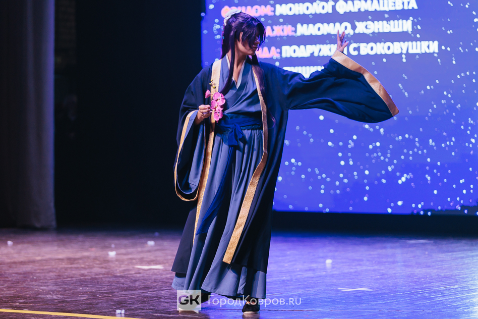 После театрализованного вступления и презентации жюри один за другим на сцену выходили участники. Дефиле косплеера — это краткая сценка, в которой через жесты, фразы идёт отсыл к произведению, откуда образ. Чем-то похоже на историческую реконструкцию и театр одновременно.