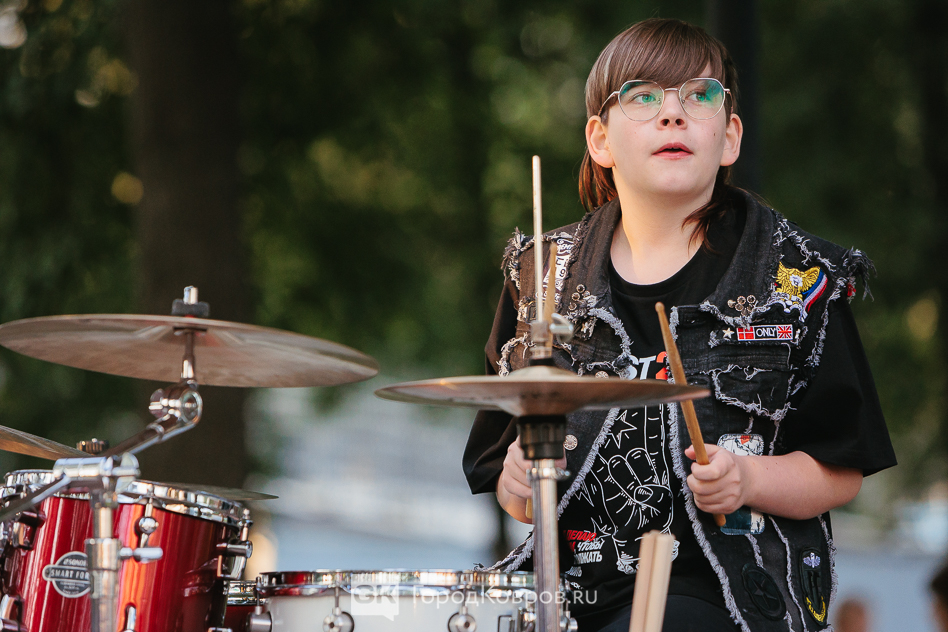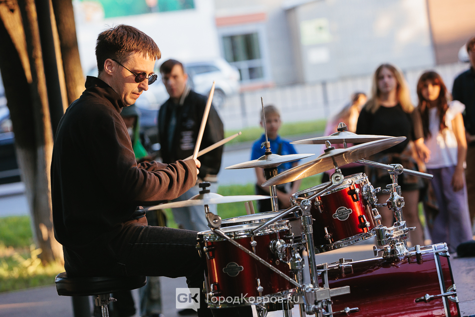 Меж тем, второй час концерта стал «отчётника» музыканта Андрея Плаченова, который давно известен в городе как профессиональный барабанщик. Он в своё время наших маржореток готовил к выступлениям, а с недавних пор преподаёт игру на ударных инструментах на базе ДК «Современник». Его проект называется «Drum Colla».