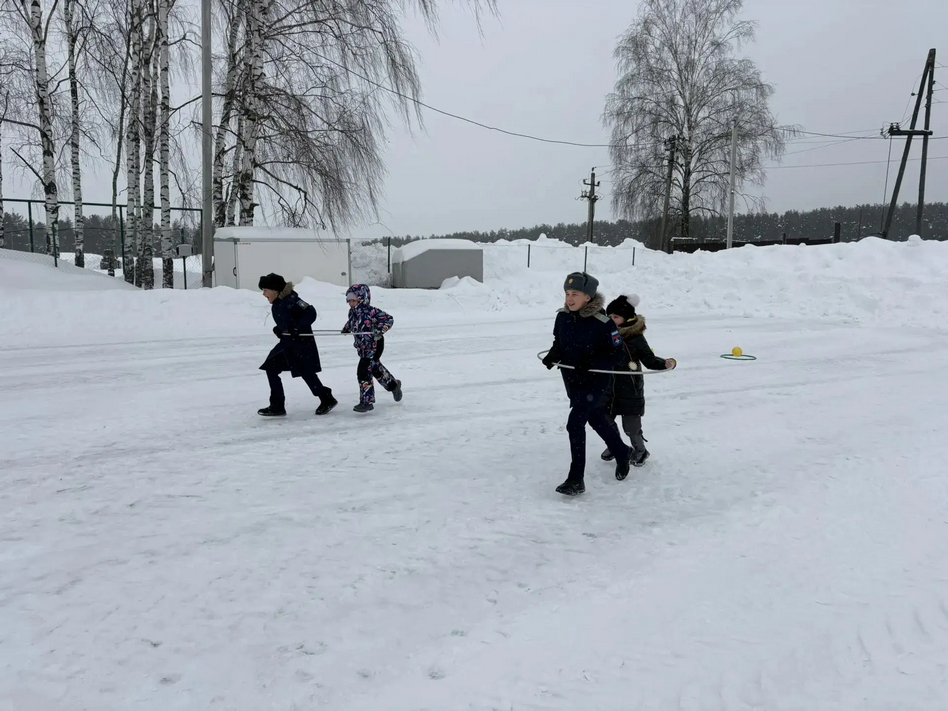 А дальше праздник продолжили очень весёлые старты на свежем воздухе. Ловкие парные передвижения в одном обруче доказали, что ребята умеют договариваться и чувствовать друг друга. Доставка ценных «грузов» убедила всех: самое необходимое всегда будет доставлено в целости и очень быстро. Прыжки в мешках по скользкому снегу показали не только ловкость, но и то, что более сильные и взрослые всегда готовы помочь тем, кто послабее. А «эвакуация» на подручных средствах заставила сорвать голос болельщиков. Каждая команда выбрала свою тактику, но слаженное взаимодействие и взаимовыручка были у всех ребят.