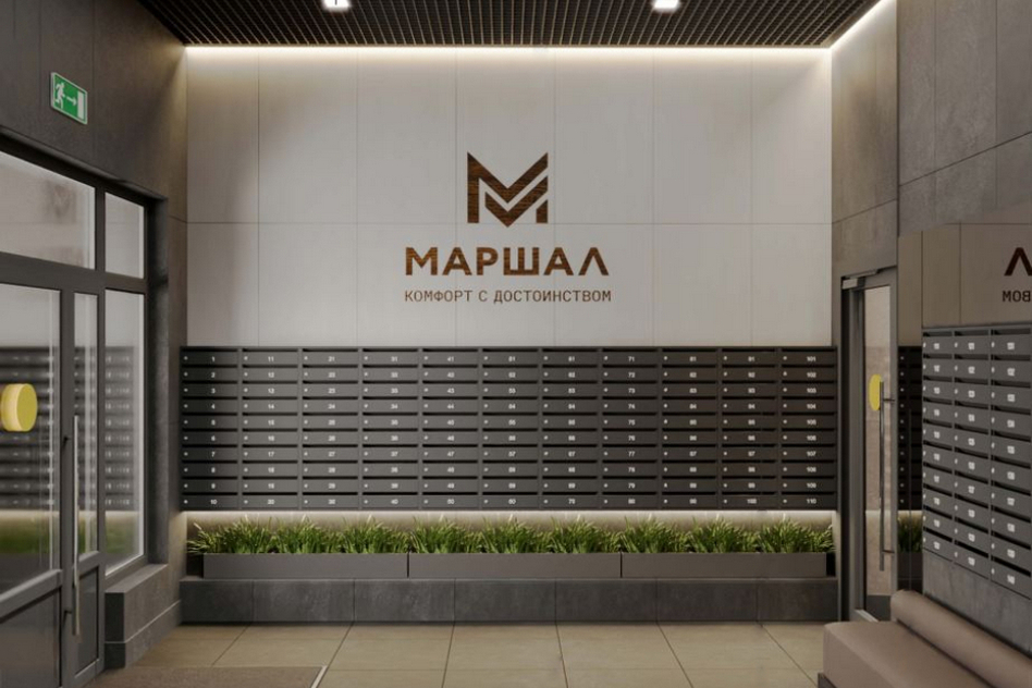 «Континент» уделяет внимание общественным пространствам. Для «Маршала» разработан индивидуальный дизайн-проект подъездов: антивандальные материалы, современный стиль, диванчики для отдыха, парковки для колясок и шкафы для хранения игрушек.