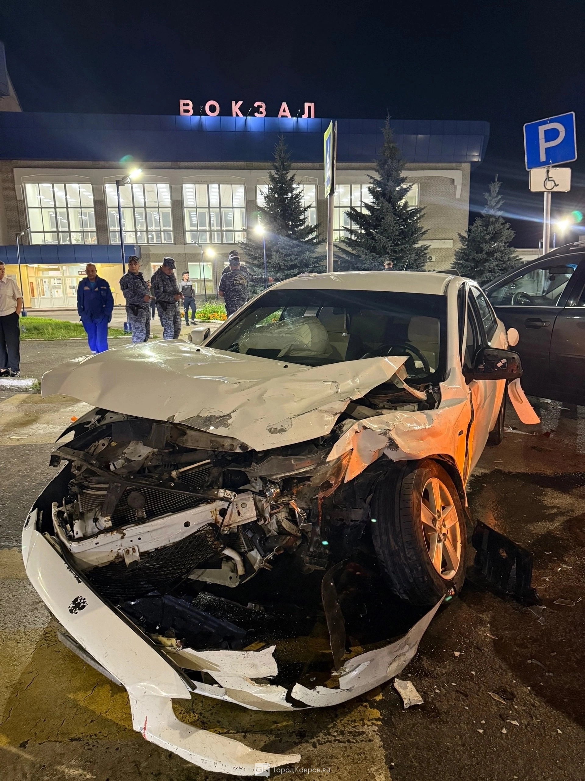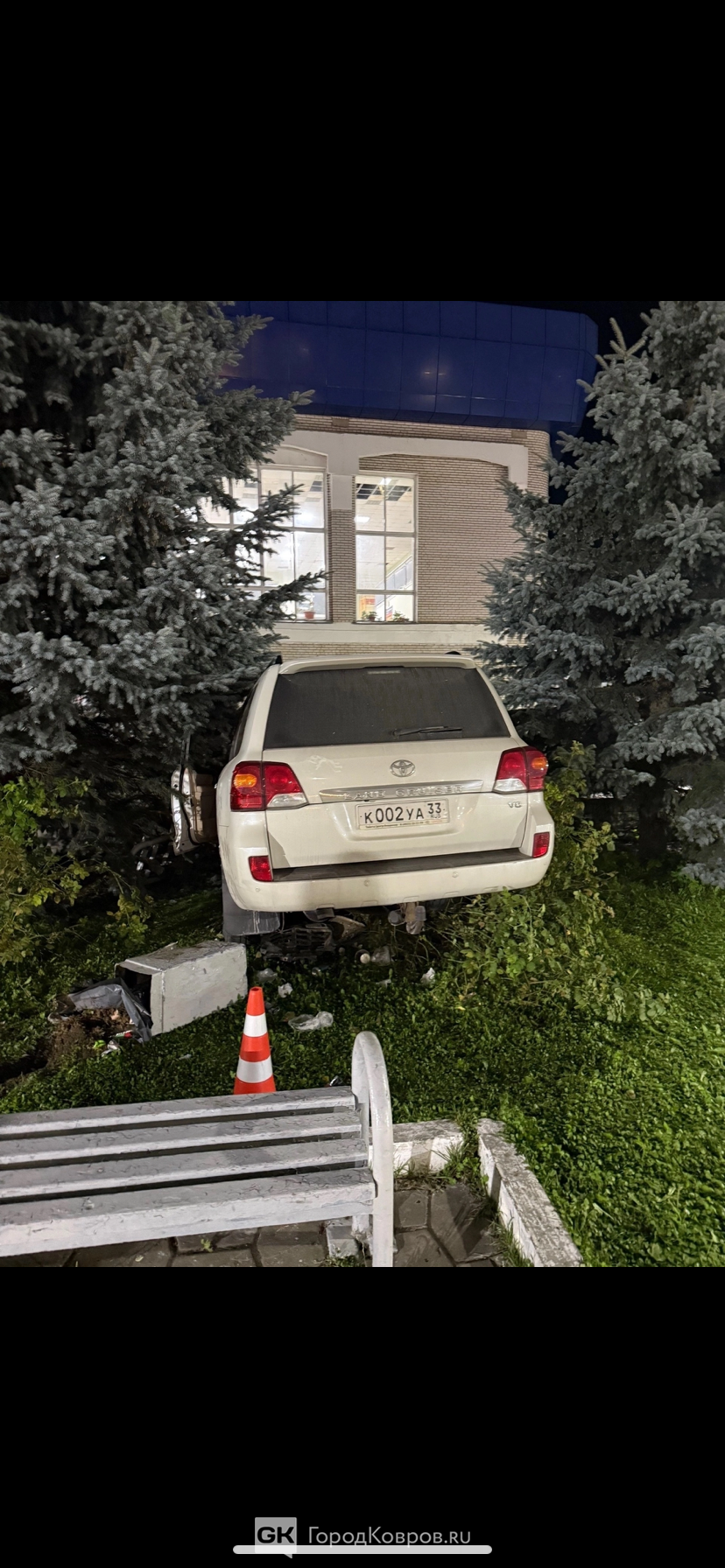 Ночью на Ковровском вокзале произошла страшная авария. Водитель Тойота Ленд Крузер на полной скорости въехал на территорию вокзала, сбил несколько машин по дороге. На скамейке сидела женщина, водитель сбил и её.