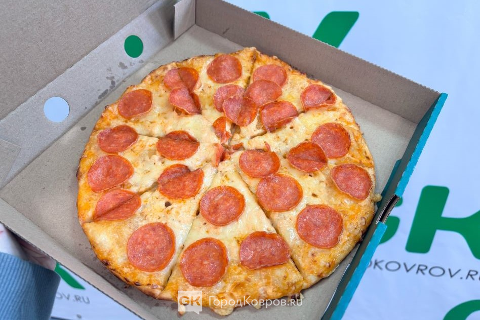Соответствие пиццы фото на сайте: не совсем. На картинке колбаса сорта «пепперони» полностью закрывает лепёшку. В действительности её почти вполовину меньше.