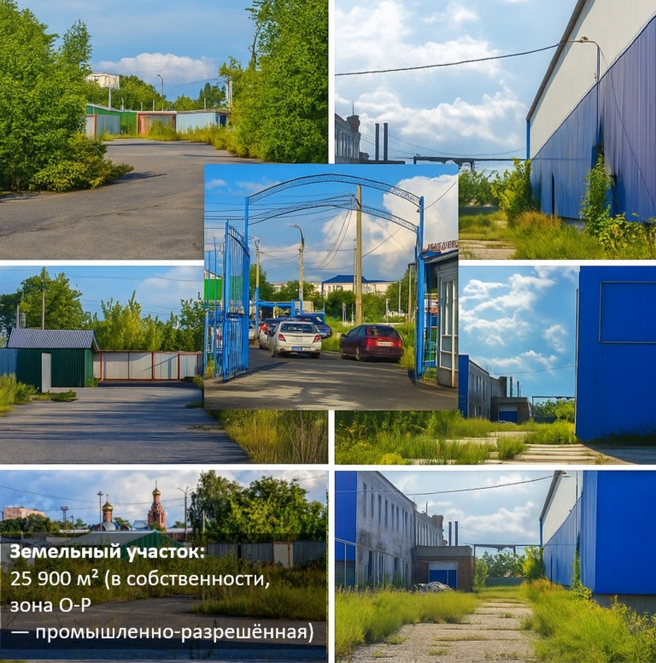 - Земельный участок: 25 900 м² (в собственности, зона О-Р — промышленно-разрешённая);