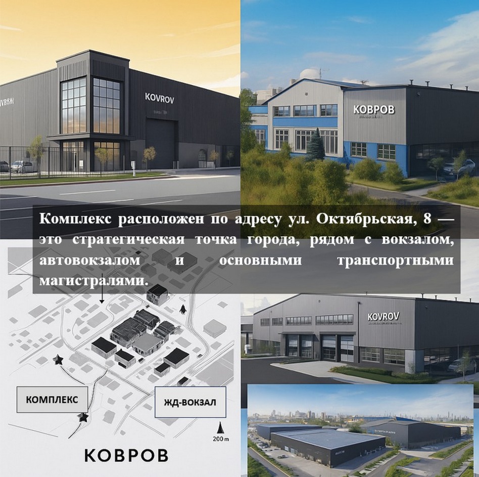 Площадка на Октябрьской, 8 и 8А — это стратегически выгодный актив для промышленного бизнеса. В центре города, рядом с вокзалом, со всеми коммуникациями и готовыми корпусами — она станет точкой притяжения для производственного капитала Владимирской области.