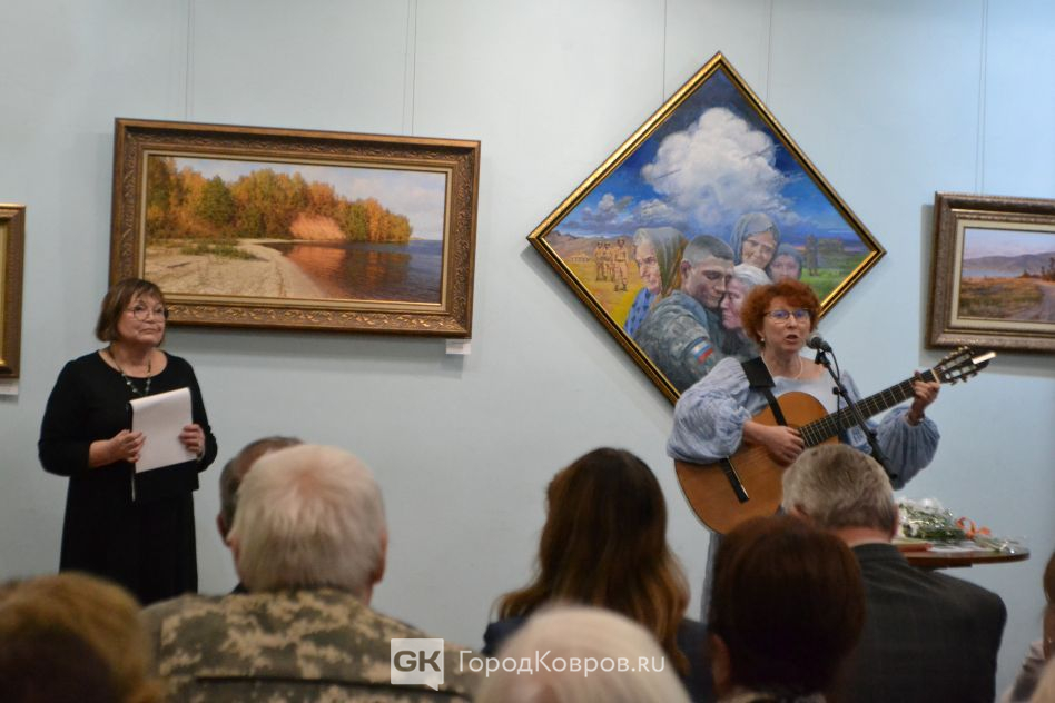 Были и традиционные творческие подарки. В исполнении Юлии Валеевой прозвучали романсы «Утро туманное» и «Печали свет». Художница Мария Филимонова прочла стихотворение Светланы Литвак, написанное в Коврове. Наша землячка — художница и поэтесса — сейчас живёт в Москве и не смогла приехать на открытие, но её картины представлены на выставке.