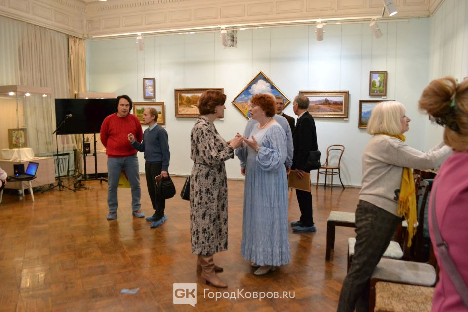 Однако само открытие получилось милым и душевным. Тёплые слова о 50-летнем содружестве музея и ковровских художников произнесли директор Ольга Монякова, председатель горсовета Елена Фомина, бывший председатель, а ныне советник губернатора, постоянный гость мероприятий музея, не чуждый искусству, Анатолий Зотов, начальник управления культуры и молодёжной политики Ирина Калигина.