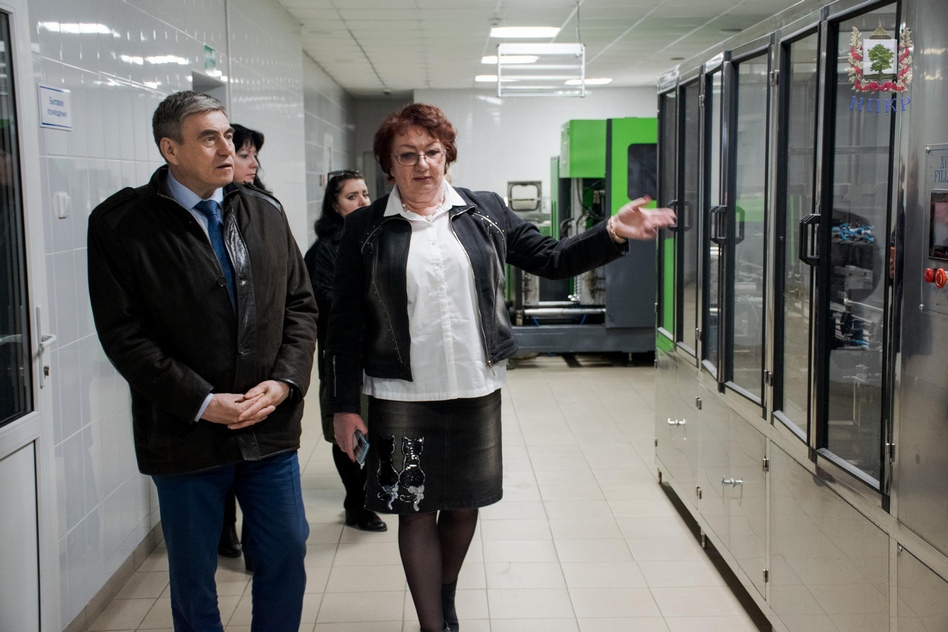 Одну смену на предприятии «закрывают» 4 оператора и один механик,по словам сотрудников предприятия, одна линия может выдавать порядка 17 тысяч бутылок в день, мы внимательно наблюдали за производственным процессом.Небольшая преформа поступает в специальную машину, которая мгновенно превращает заготовку в пластиковую бутылку – чудеса, да и только. Далее бутылку накачивают углекислым газом – для газированных напитков, либо же напрямую отправляют для наполнения.