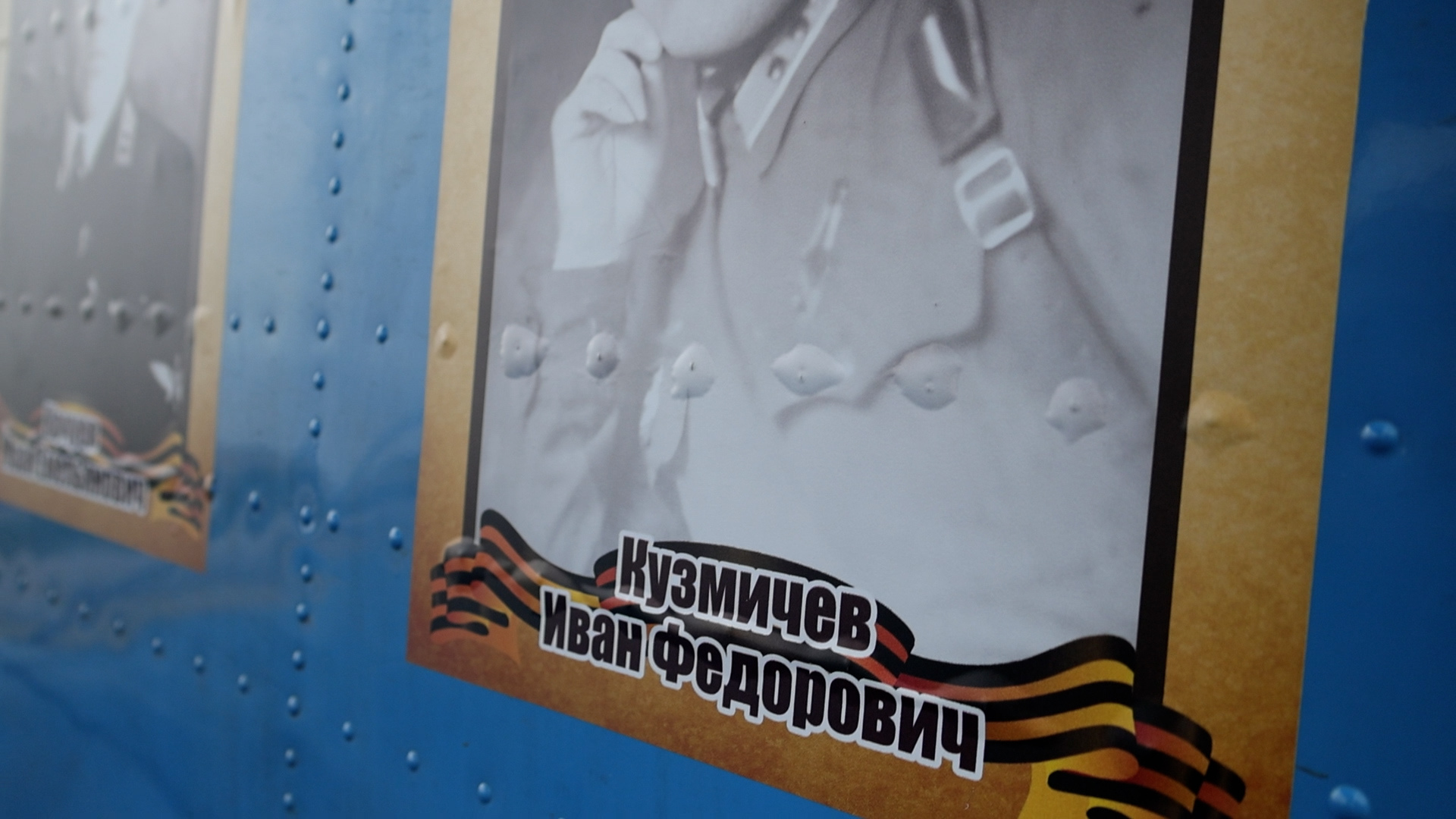 Есть на корпусе самолете и фотография Ивана Федоровича Кузмичева. Он окончил летное училище в Чернигове, участвовал в Сталинградской битве и был комиссован после ранения. Портрет ветераны войны на фюзеляж приклеила его родная дочь.