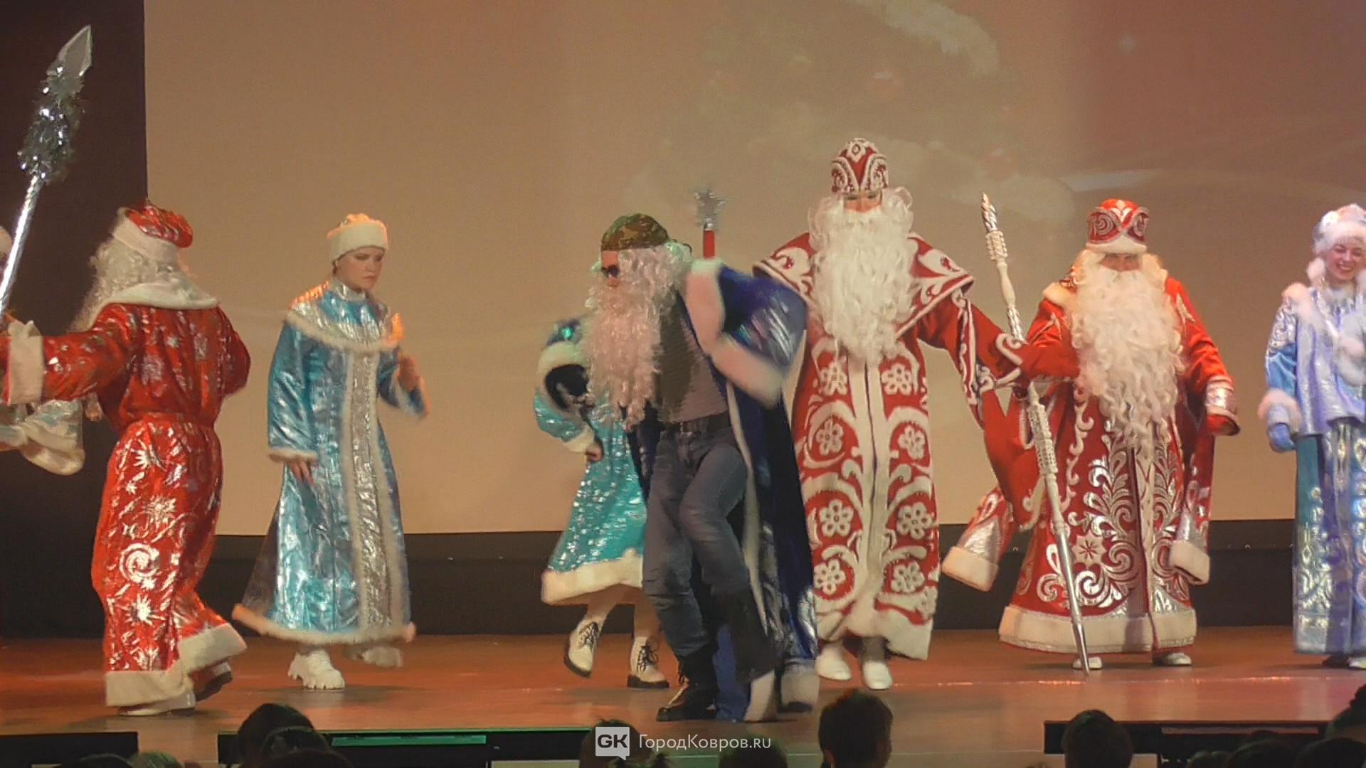 Деды Морозы со своими Снегурочками танцевали на сцене русскую «ковырялочку», твист, танец роботов, в присядку и «Цыганочку» — всё это были задания весёлой ведущей. Очень было интересно смотреть, как по-разному Дедушки справляются с заданиями.
