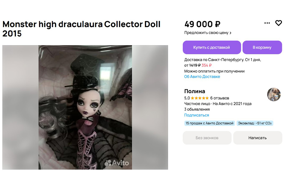 Куклы-монстры Monster High очень популярны в России. В магазинах такие игрушки стоят от 1500 рублей. А вот ценник на оригинальных кукол достаточно высокий. На маркетплейсах страшилки стоят от 6000 до 70 000 рублей. Заядлые коллекционеры не скупятся и могут выложить за коллекционных редких кукол гораздо больше. Такими объявлениями пестрит Авито и другие сервисы продажи с рук.