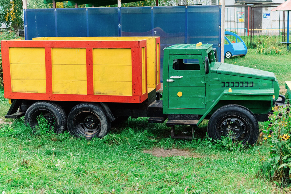 В конкурсе участвует целый «автопарк» самодельных грузовиков на территории детского сада №23. Их смастерил Василий Лютницкий, и изначально делать всё настолько похожим на настоящие грузовики в планы не входило. Но мастер увлёкся, и получились крепкие, уникальные, интересные конструкция, которые, действительно, будто могут взять и поехать прямо сейчас.