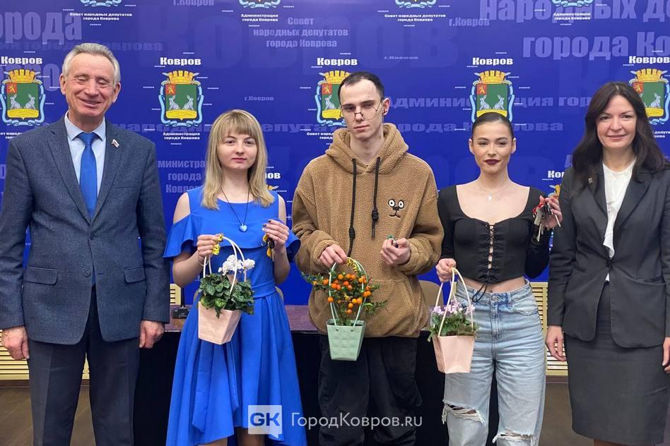 Вручение квартир происходит по программе «О формировании списка детей сирот, оставшихся без попечения родителей». Вчера обладателями квартир стали трое ковровчан: Анастасия Белова, Егор Курчаткин, Добрава Радостинова.