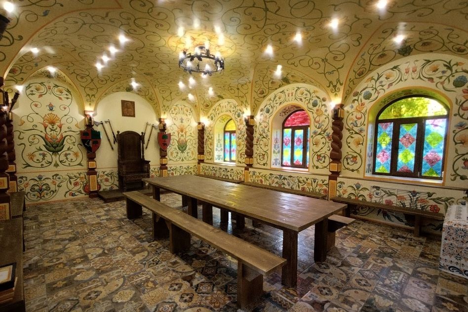 «Палаты князя Стародубского» выполнены, как и следует из названия, в стиле русского средневекового терема: сводчатый потолок, витражные окна.