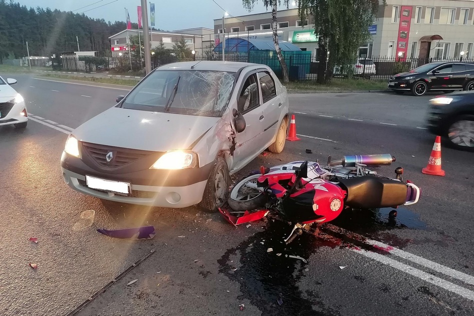 «По предварительной информации ГИБДД, 30.05.2024 г. около 20 час. 40 мин. в г. Коврове у д. 1 в по ул. Еловая, водитель 1957 г.р., управляя автомобилем «Рено Логан», выезжая с прилегающей территории и поворачивая налево, совершила столкновение с мотоциклом «Хонда» под управлением водителя 1985 г.р., движущимся по главной дороге, не изменяя направления движения. В результате ДТП водитель мотоцикла получил телесные повреждения».
