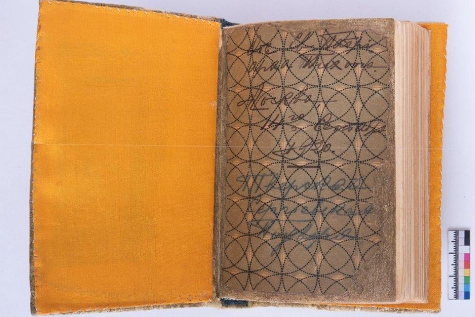 Очевидно, позднее это Евангелие, проделав невероятный путь, оказалось в руках настоятеля женевского Крестовоздвиженского собора архимандрита Леонтия. Несомненно, для него это была очень ценная, знаковая книга. Однако Леонтий без колебаний подарил Евангелие Тихона глубоко почитаемому им русскому писателю Ивану Сергеевичу Шмелёву, дабы поддержать его в трудную минуту. На обороте титульного листа Леонтий оставил об этом трогательную душевную дарственную надпись.