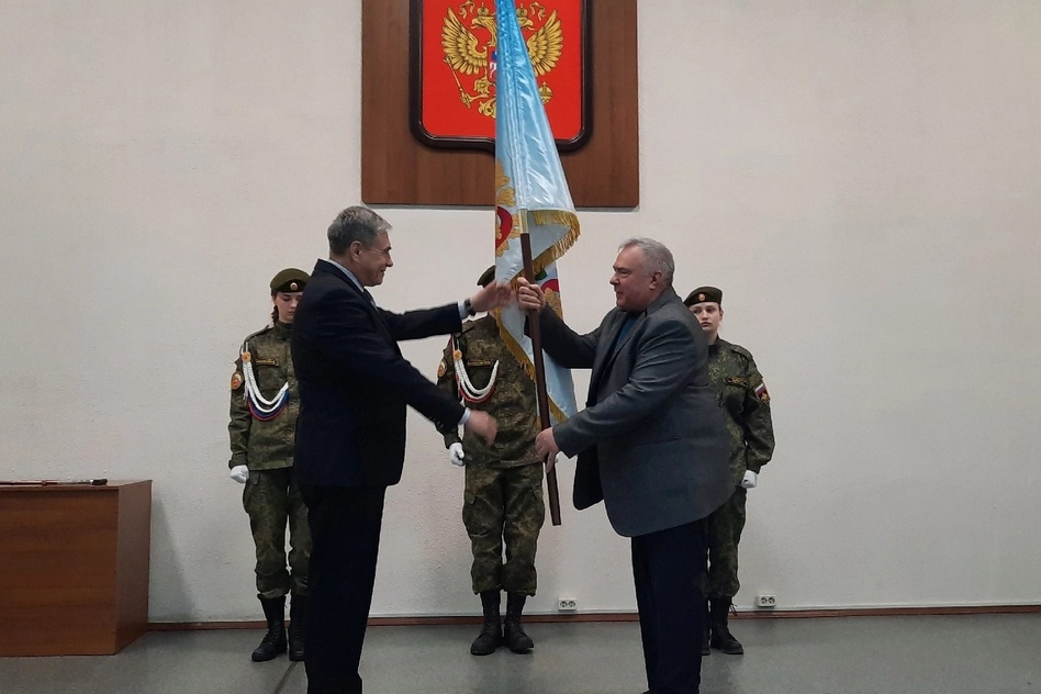 Флаг главе администрации Вячеславу Скороходову торжественно передал глава района Юрий Назаров в пятницу, 14 апреля. Теперь в Ковровском районе есть все три обязательных символа административного объекта: герб, гимн, флаг.