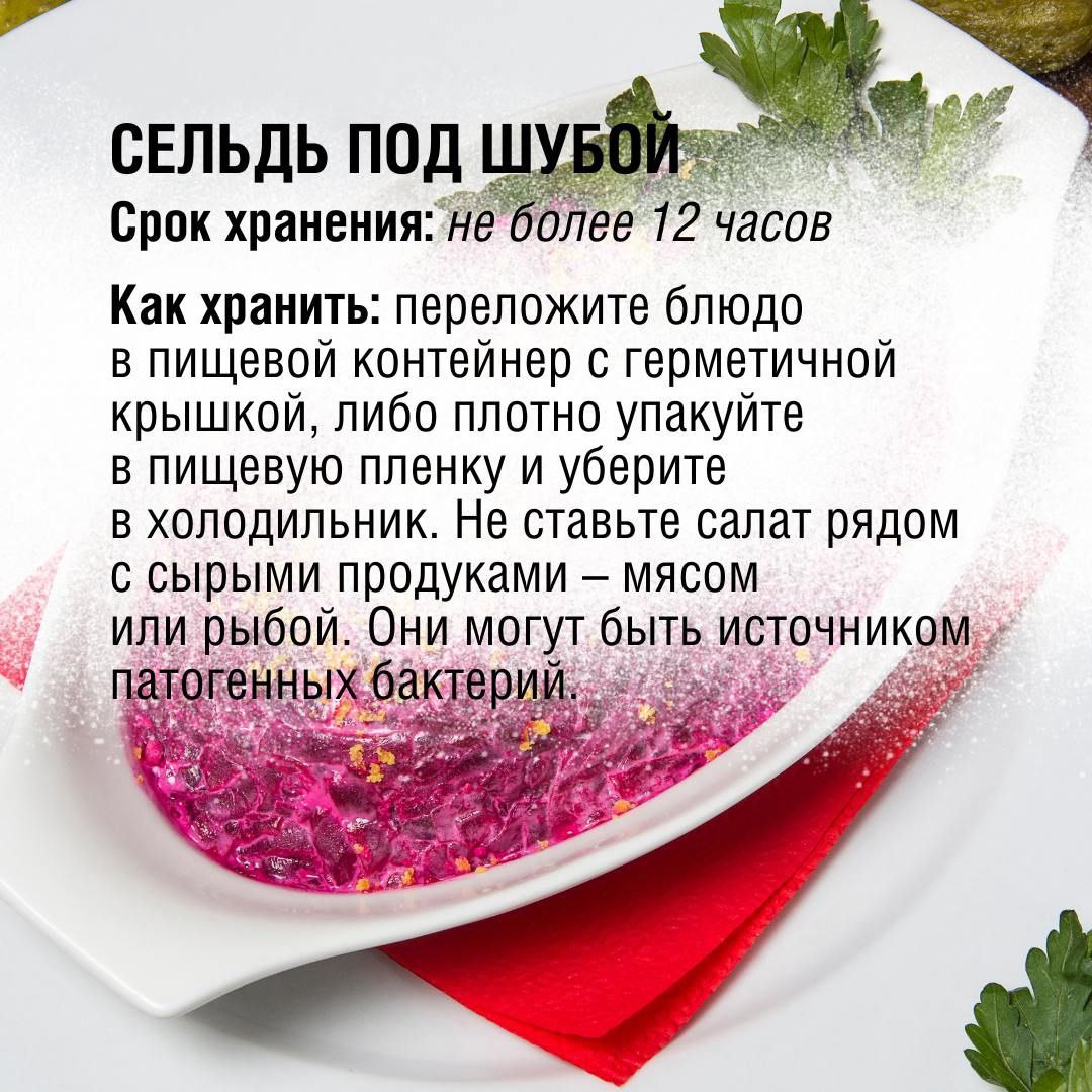 Санитарные врачи передают нам всем привет, пожелания доброго здоровья и памятку о том, сколько хранятся новогодние кушанья. Пролистайте карусель и сверьтесь с тем, что в данный момент у вас на столе и в холодильнике.