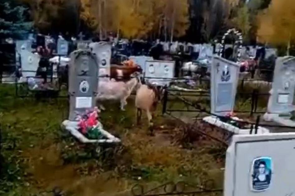 Инцидент с прогулками животных по кладбищу произошел в конце прошлого года. Местная жительница рассказала, что стадо коз и козлов прогуливается по кладбищу, поедает цветы и топчет могилы. Фермер на возмущение жительницы сослался на отсутствие забора на территории кладбища.