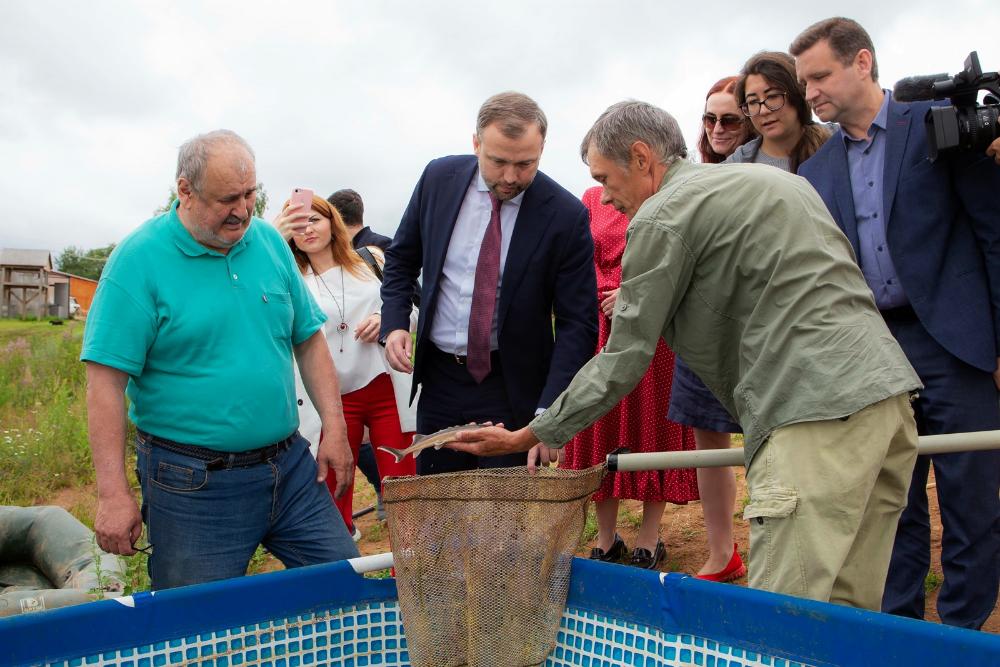 В Кольчугинском районе фермерское хозяйство по выращиванию товарной рыбы осетровых получило грант на развитие в размере 2,8 миллионов рублей. На эти деньги были выкопаны пруды и оснащены необходимым оборудованием. В настоящее время на ферме насчитывается 40 тысяч осетровых. Работу крестьянско-фермерского хозяйства проверил вице-губернатор Александр Ремига.
