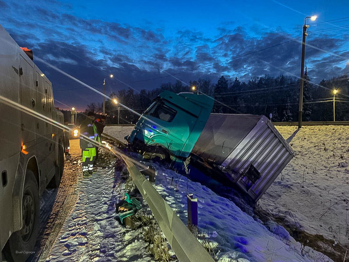 Вечером 16 ноября на автодороге в сторону Нижнего Новгорода произошло ДТП с участием грузового автомобиля. Транспортное средство съехало в кювет на съезде Южного объезда, потребовав вмешательства спасателей.