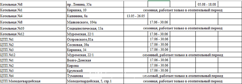 Ранее на сайте администрации Коврова был опубликован график плановых отключений. он выглядел следующим образом.