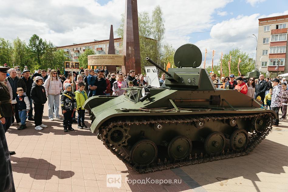 В Коврове после парада в честь 80-й годовщины Великой Победы в сквере, прилегающей к площади, развернулась экспозиция военной техники.