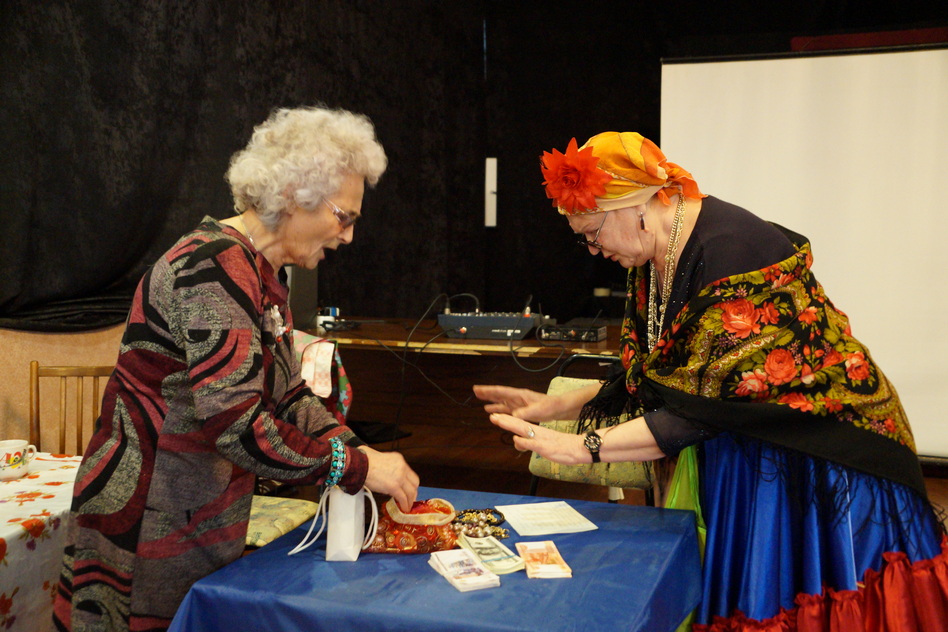 Участники клуба «Огонек» разыграли тематические сценки. Татьяна Владимировна и Нина Константиновна продемонстрировали незаурядный актерский талант, их сценка «Бабушка и цыганка» произвела настоящий фурор в зрительном зале.