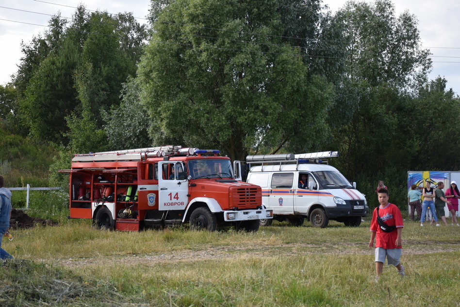 Сотрудники пожарной охраны и спасатели поисково-спасательного отряда тоже стали гостями праздника. Они представляли интерактивную площадку «Территория безопасности». Примечательно то, что на фестиваль приехали дети и взрослые из отдалённых населенных пунктов Ковровского района, у которых не было возможности ранее познакомиться с пожарной техникой.