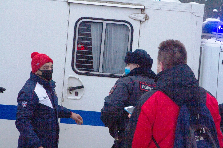 «Дружинники» в спортивных костюмах, ими руководил человек в красной шапочке, видимо, чтобы его могли лучше видеть в толпе, не представлялись, не предъявляли никаких документов, не объясняли — на каких основаниях задерживают.