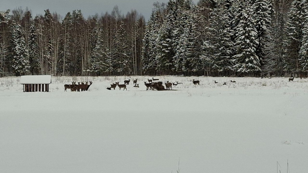 Во время планового рейда по охране животного мира в Суженском охотничьем хозяйстве (Суздальский муниципальный округ) инспектору удалось сделать уникальные кадры: на подкормочной площадке была зафиксирована многочисленная группа пятнистых оленей.