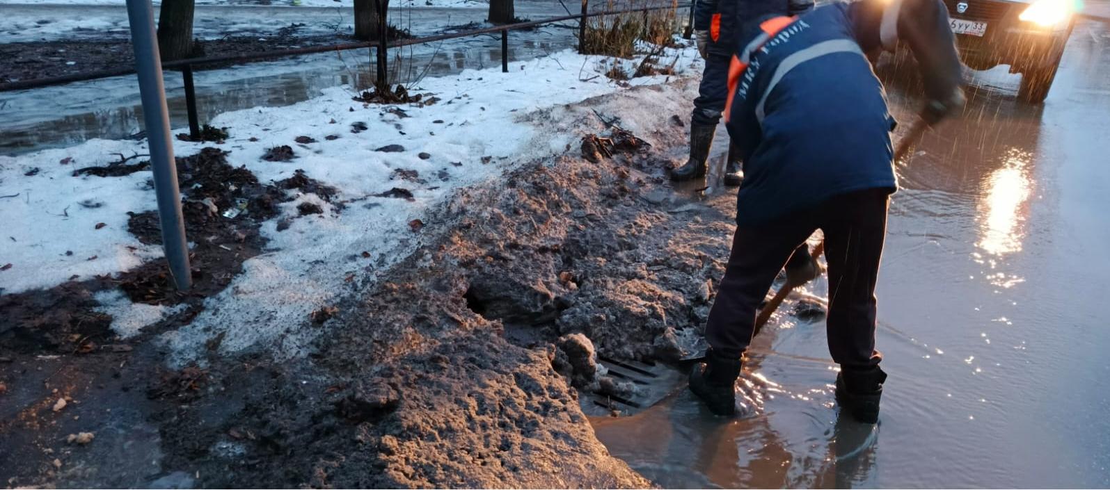 Кроме того, идет очистка решеток и отводных ливневок от мусора, льда и снега на ул. Кузнечная, Абельмана, Белинского, Калинина, Пионерской, Сосновой, Димитрова.
