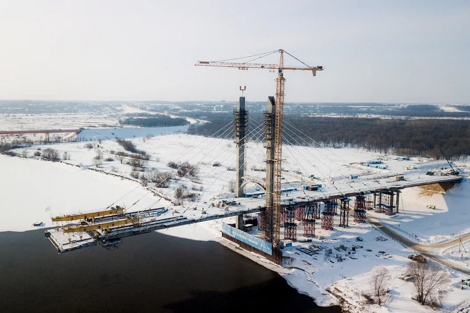 Проехать по нему можно будет уже этой осенью, когда откроется участок трассы от Москвы до Арзамаса. Пока же продолжаем монтировать блоки руслового пролета и вантовую систему. Она больше чем на половину состоит из отечественных комплектующих.