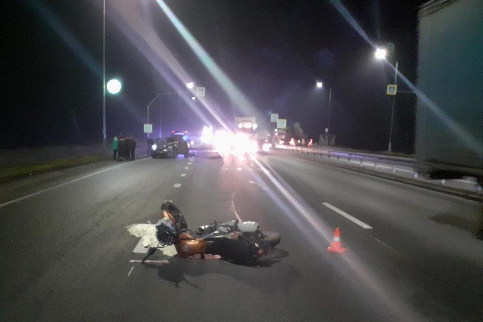 По предварительной информации ГИБДД, 04.11.2021 г. в 19 ч. 00 мин. в Ковровском районе на 233 км + 600м водитель 1981 г.р., управляя автомобилем Ниссан Кашкай, двигаясь со стороны г. Москва в сторону г. Нижний Новгород в крайней левой полосе, совершил столкновение с мотоциклом под управлением водителя 1979 г.р., не имеющим водительского удостоверения, который пересекал проезжую часть дороги по нерегулируемому пешеходному переходу слева направо по ходу движения автомобиля, не спешившись. В результате ДТП мотоциклист скончался от полученных травм.