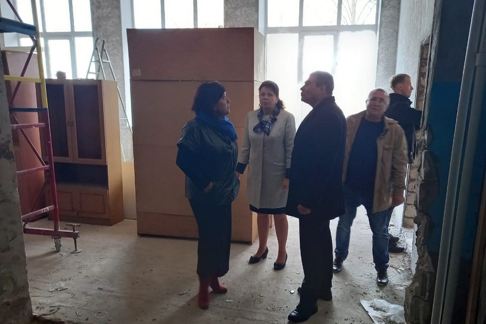Одна из них — инспекция в посёлок Красный октябрь. Там идёт ремонт Дома культуры.