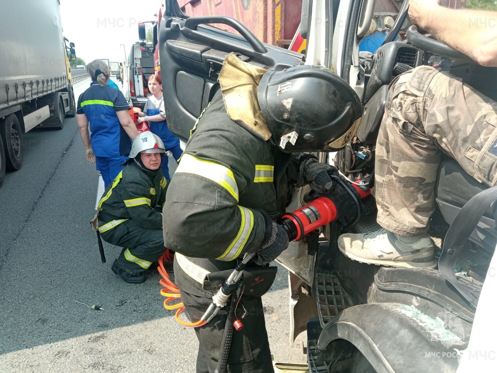 - «В результате ДТП произошло столкновение 2-х транспортных средств. Сотрудниками МЧС России проводилась деблокировка пострадавшего. Всего в ликвидации последствий ДТП принимали участие 15 человек, 5 единицы техники, в том числе от МЧС России 7 человек, 2 единицы техники».