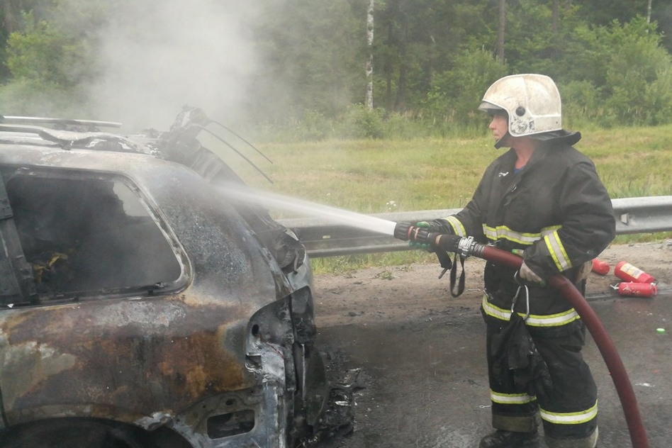 На место незамедлительно выехали пожарно-спасательные подразделения. На момент прибытия подразделений наблюдалось горение автомобиля по всей площади. Пожарные оперативно ликвидировали пожар на общей площади 5 кв. м.