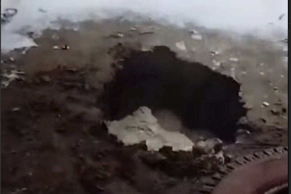 Видео с инцидентом попало в социальные сети. Жители опасаются, что в следующий рав в яму могут попасть дети, тем более в темное время суток, когда дорога плохо освещена.