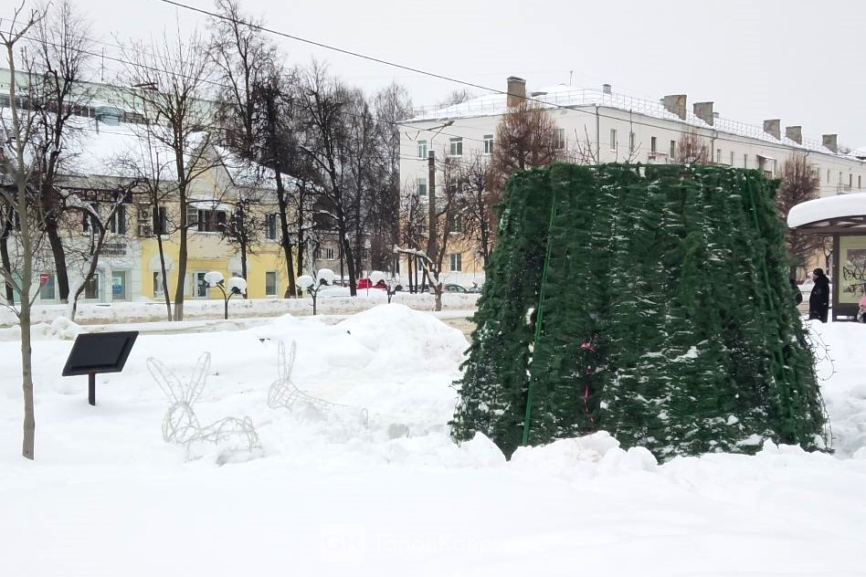 В сквере Никитина с ели сняли игрушки и разобрали… пока наполовину. Видимо, быстро довести дело до конца помешали большие сугробы, окружившие дерево и световые инсталляции. Видимо, на днях уберут остатки всех новогодних конструкций.